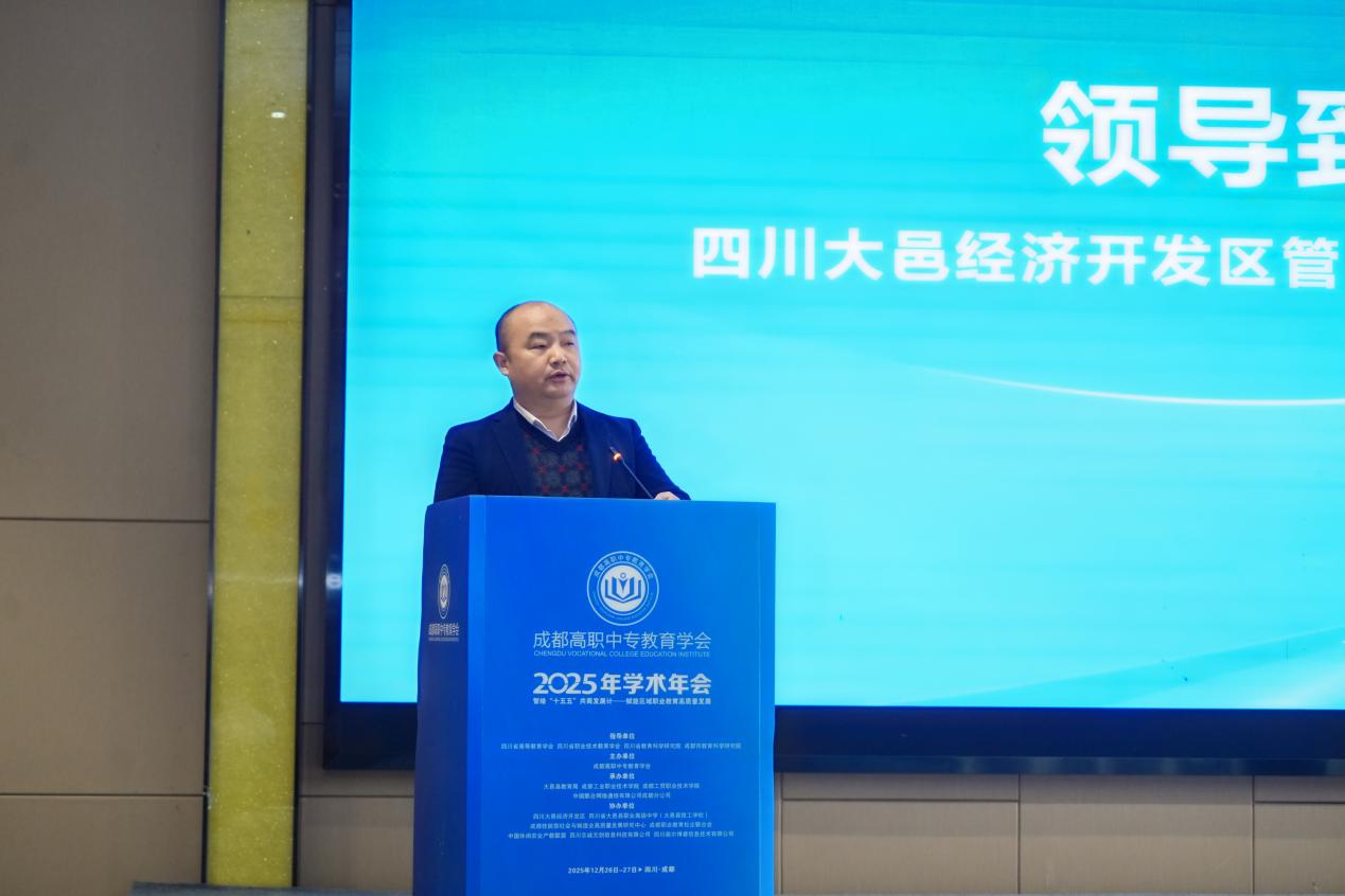 12月27日,由成都高职中专教育学会主办,成都工贸职业技术学院、成都技能型社会与制造业高质量发展研究中心、四川大邑经济开发区共同承办的“校地联动 产教融合——职业教育‘立园满园’助力成都市产业高质量发展学术研讨会”在大邑顺利召开。来自政府、产业园区、职业院校及企业的150余名代表齐聚一堂,共商职业教育服务区域产业升级新路径。