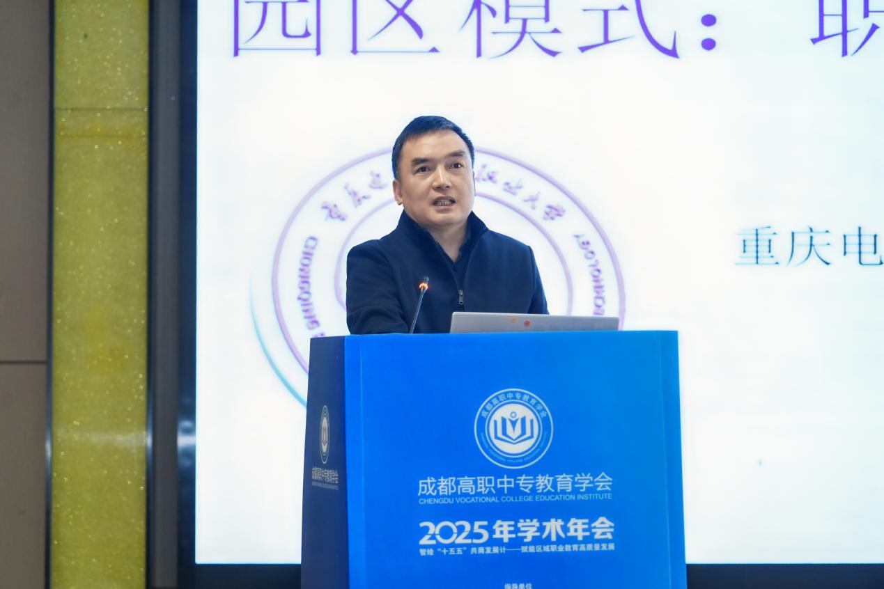 会议特邀重庆电子科技职业大学校长聂强教授作主旨报告。聂强教授是国家级职业教育领军人才、二级教授、博士生导师,他以《园区模式:职业教育产教融合的新路径》为题,系统阐述了破题“校热企冷”困境的关键思路。