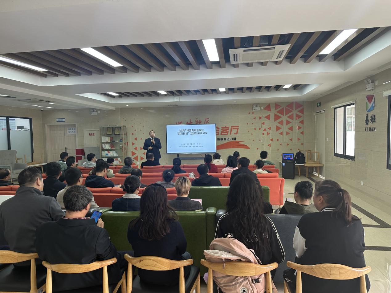 为深入贯彻落实知识产权强国战略,提升学校知识产权创造、运用、保护与管理能力,助力“双高计划”建设,4月1日下午,我校在学生一站式社区举办了主题为《知识产权助力职业院校“双高计划”建设暨实务分享》的专题培训。本次培训特邀四川省市场监督管理局知识产权规划处冯雷同志主讲,来自各二级学院、行政处室的师生代表50余人参加了培训。